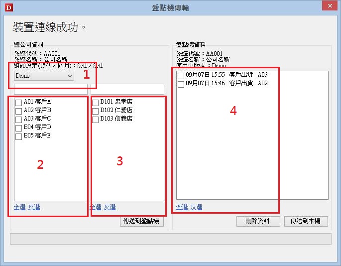 區塊4:選擇要傳回本機的盤點機作業存檔