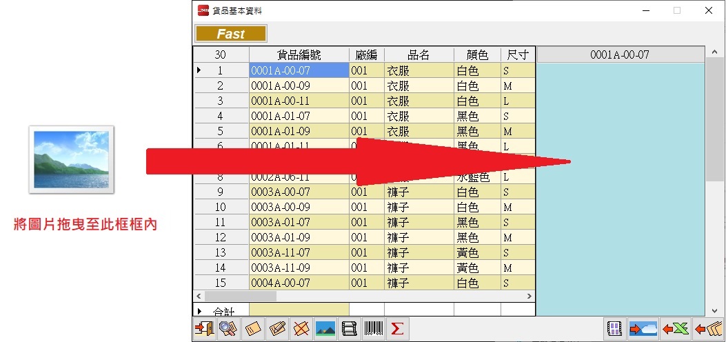 2. 將圖片直接拖曳至【貨品基本資料】中的圖片框內