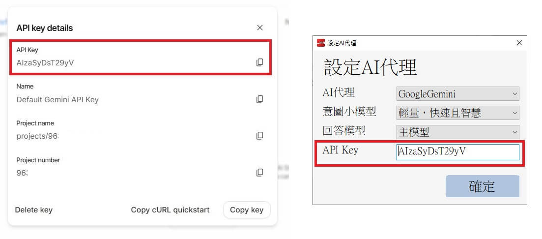 4.複製【API Key】到珍珍AI助理貼上,即可使用AI助理