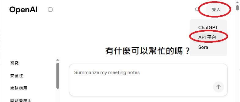 2. 點選右上角【登入】再點選【API平台】