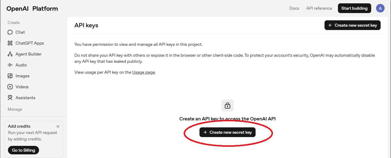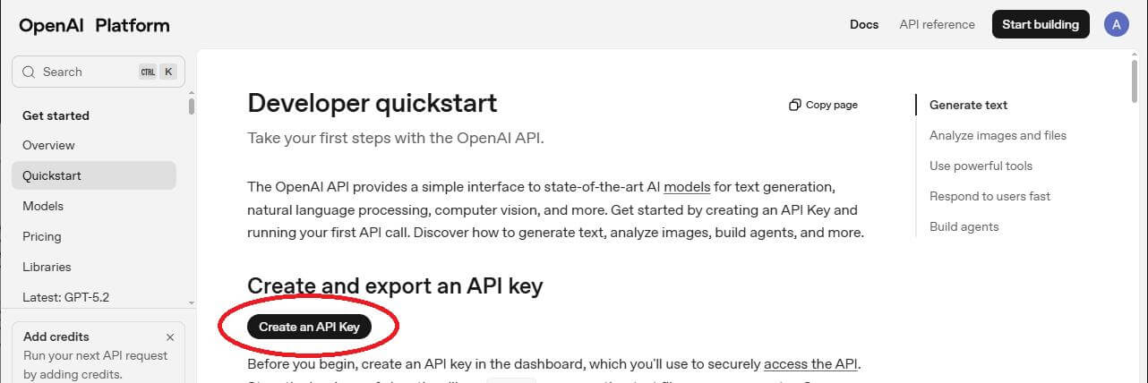4. 點選【Create an API key】