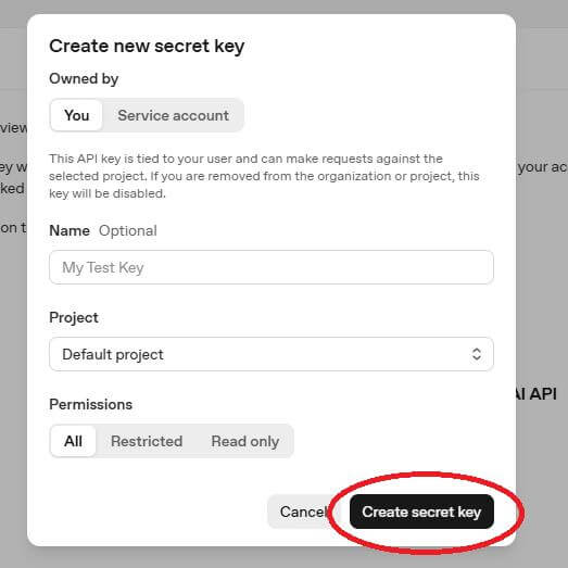 6. 點選【Create secret key】