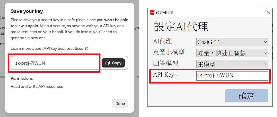 4. 複製【API Key】到珍珍AI助理貼上,即可使用AI助理